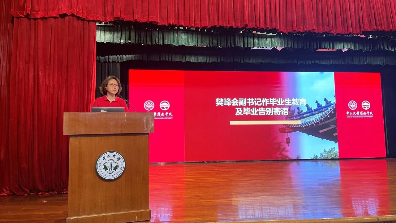 樊峰会副书记对毕业生提出了四点期望:一是诚信为人,希望同学们认真做好各项毕业离校工作,为自己的未来负责,也为学校学院多年来的培养负责;二是心怀感恩,牢记传承中大精神、岭南精神,感谢恩师的培养和教诲,感激身边同学的陪伴与帮助;三是遵规守纪,安全有序地参与健康文明、品味高雅的毕业活动,为自己的大学生活画上一个圆满的句号;四是廉洁自律,期望同学们涵养廉洁自律的道德修为,心有所畏、言有所戒、行有所止,守住底线。