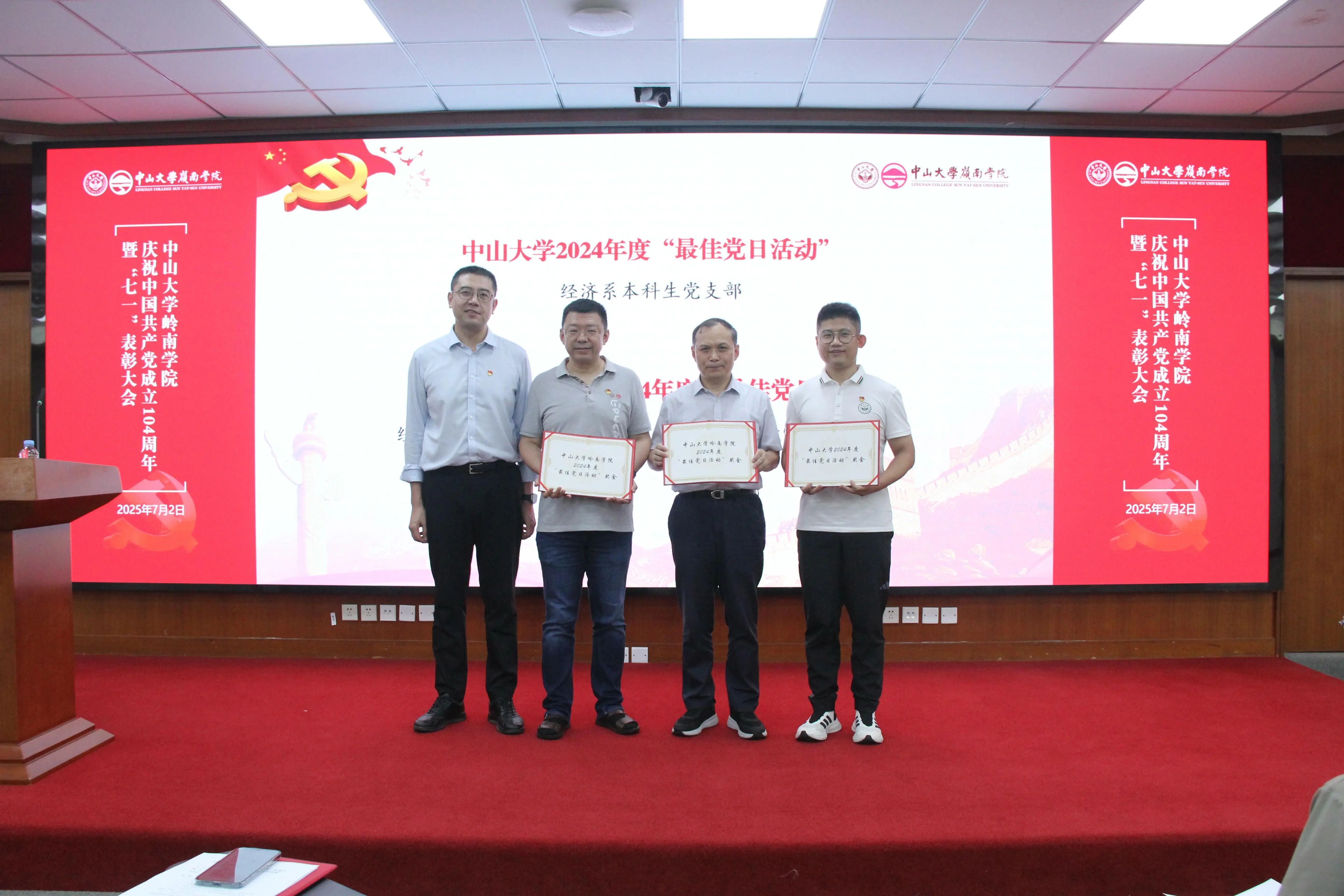 黄毅书记为“岭南学院先进党支部”颁奖