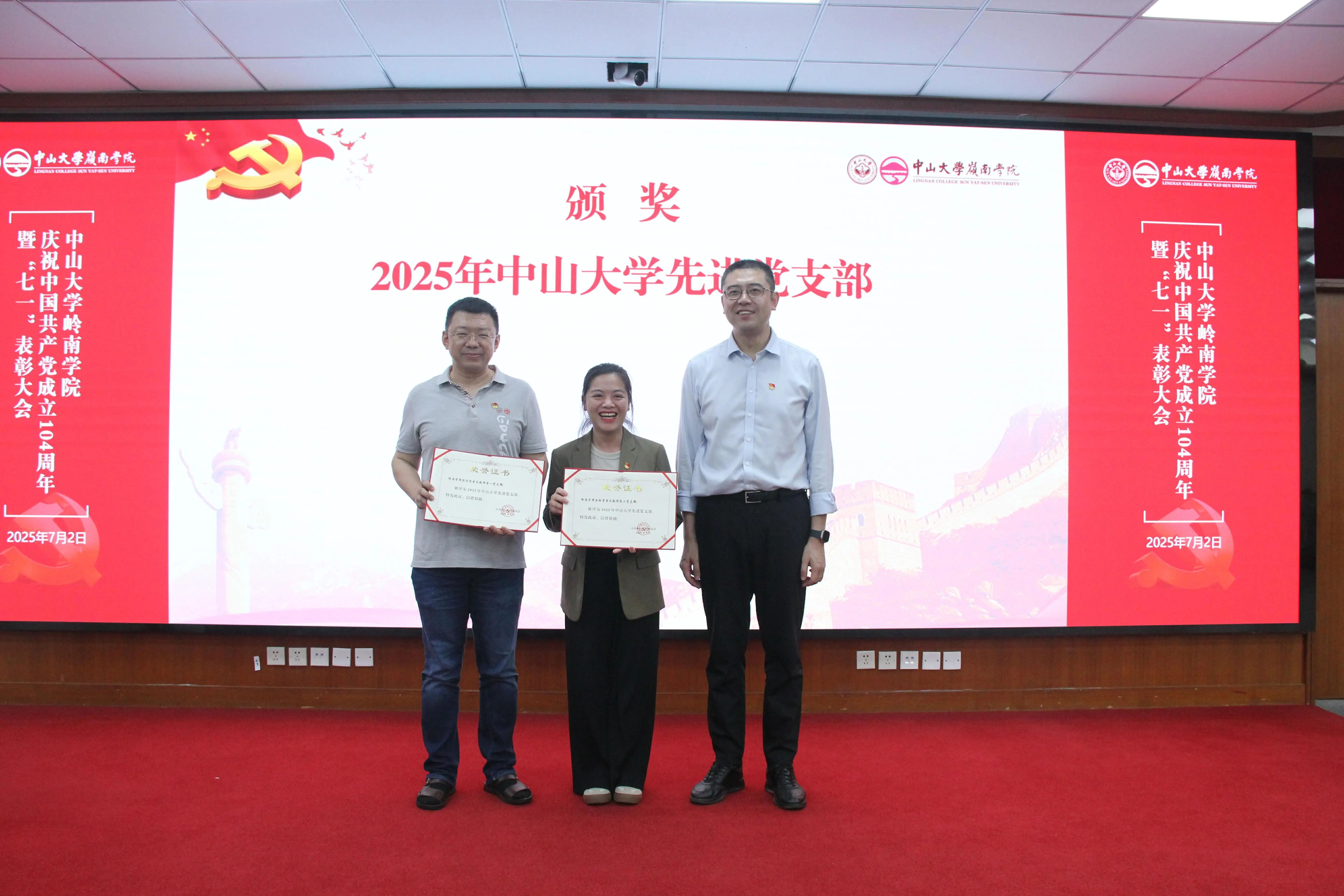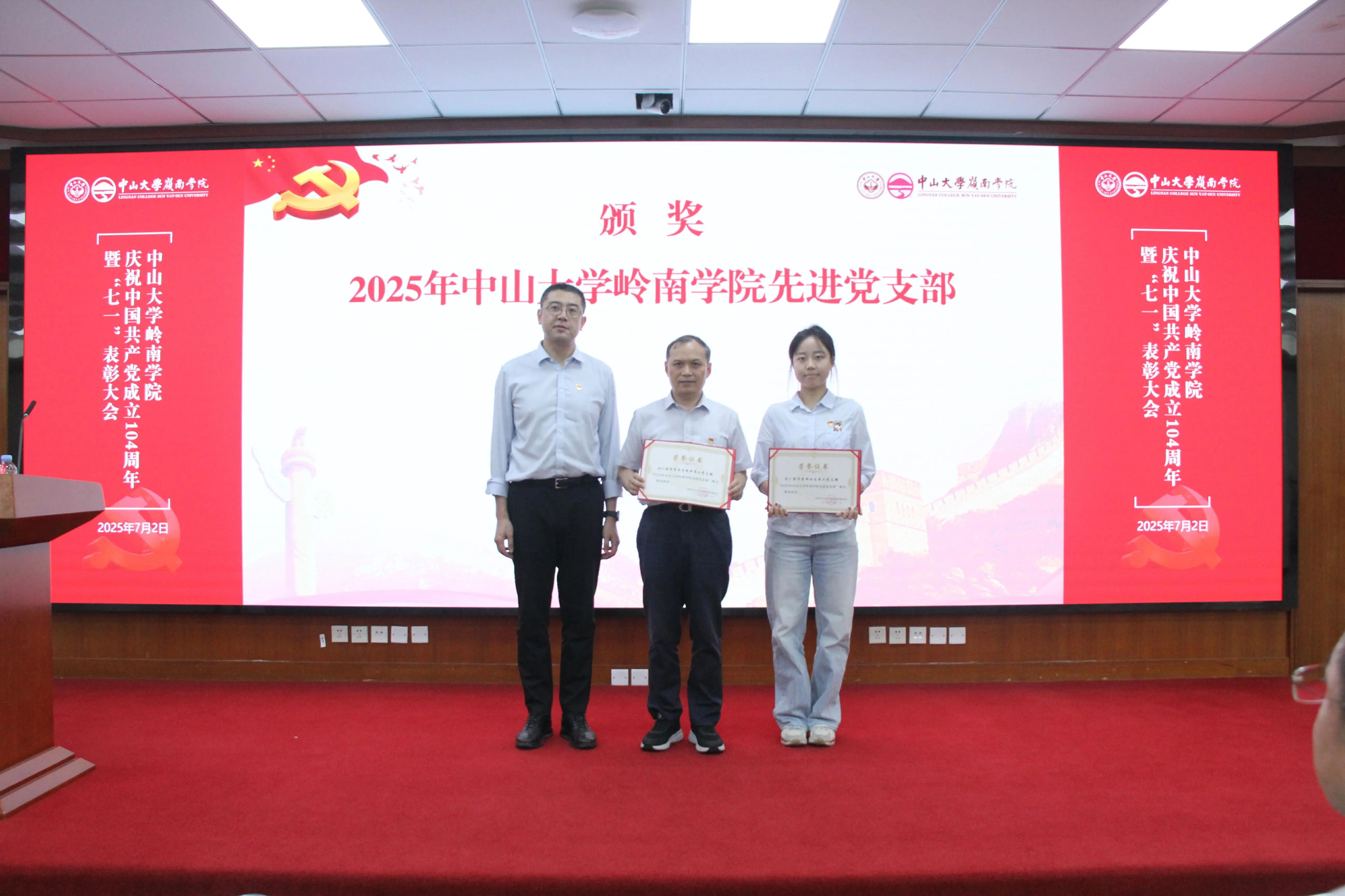 郭凯明委员为“岭南学院优秀共产党员”颁奖