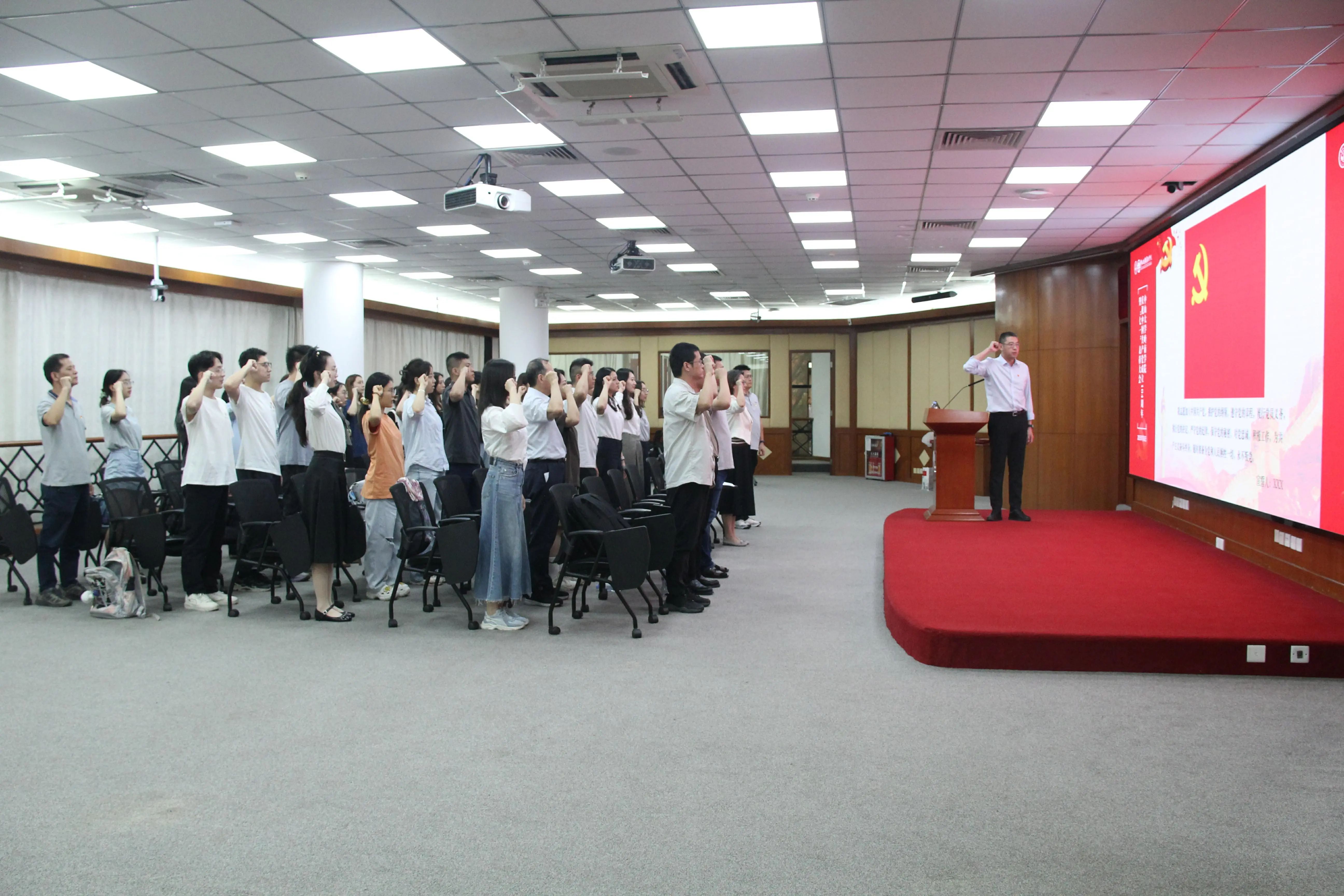 大会在庄严的国歌声中开幕。黄毅书记作为领誓人,带领与会预备党员进行入党宣誓,现场全体正式党员重温入党誓词。