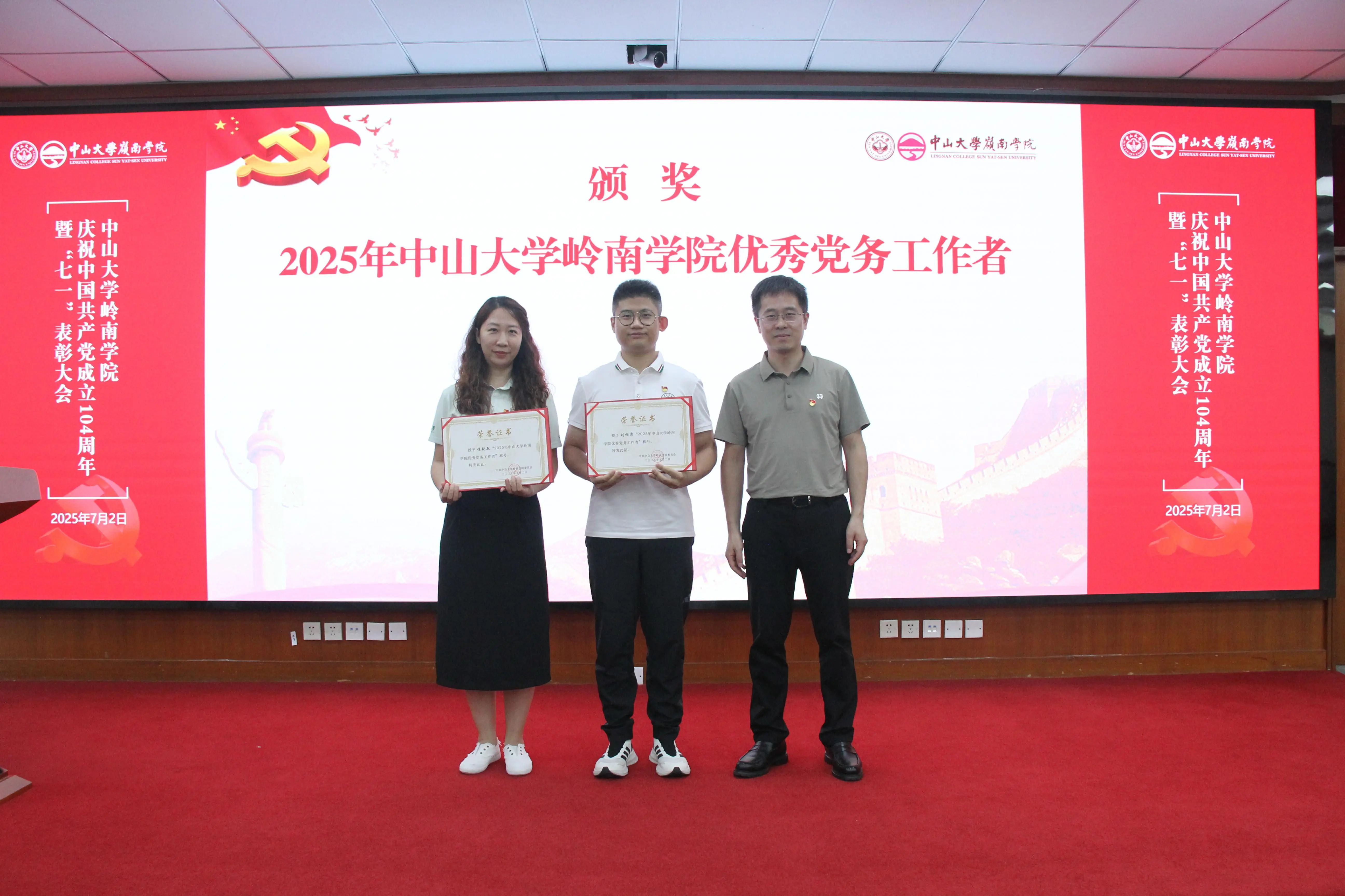 柳建华院长助理为“岭南学院优秀党务工作者”颁奖