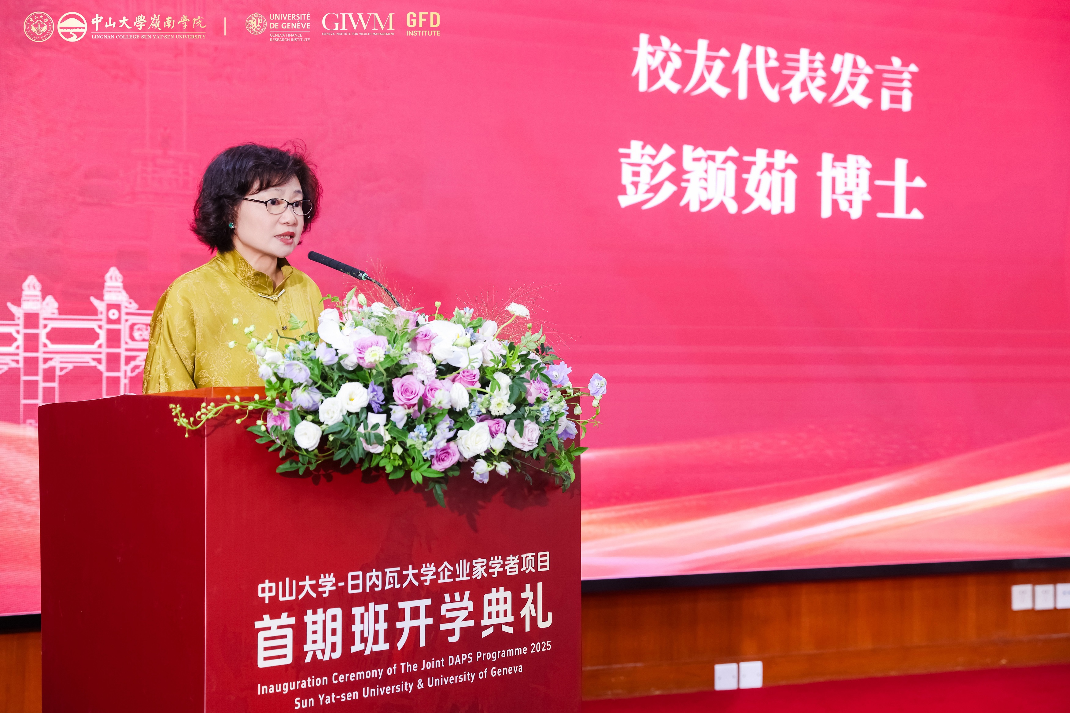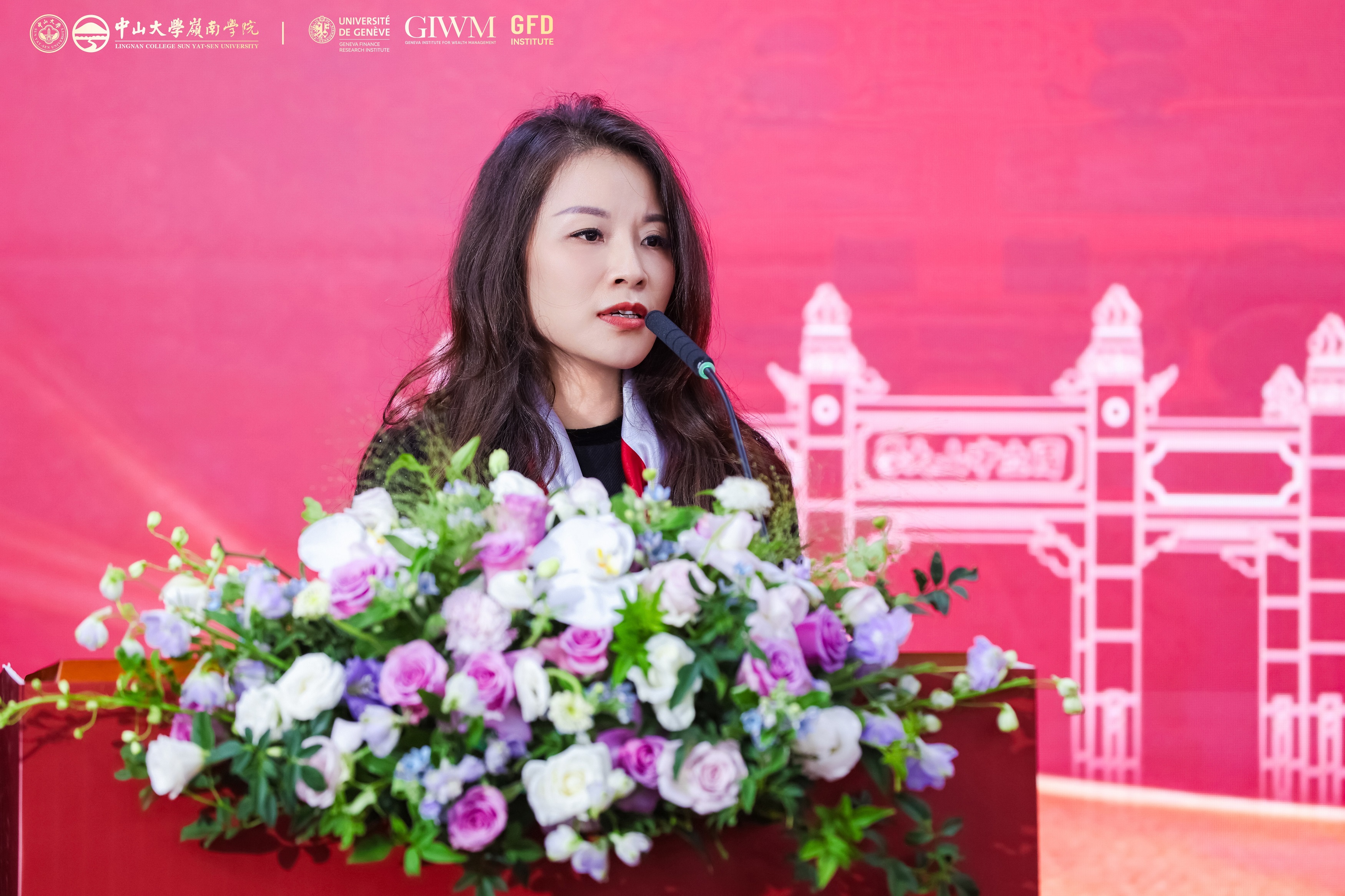 广州市浩洋电子股份有限公司联合创始人彭颖茹博士作为yl9193永利集团岭南学院EMBA和日内瓦大学应用金融学博士项目的校友代表发言。她表示,该项目融汇两校顶尖资源、搭建高端平台,并勉励新生把握机遇,成长为兼具家国情怀与全球视野的商业领袖。