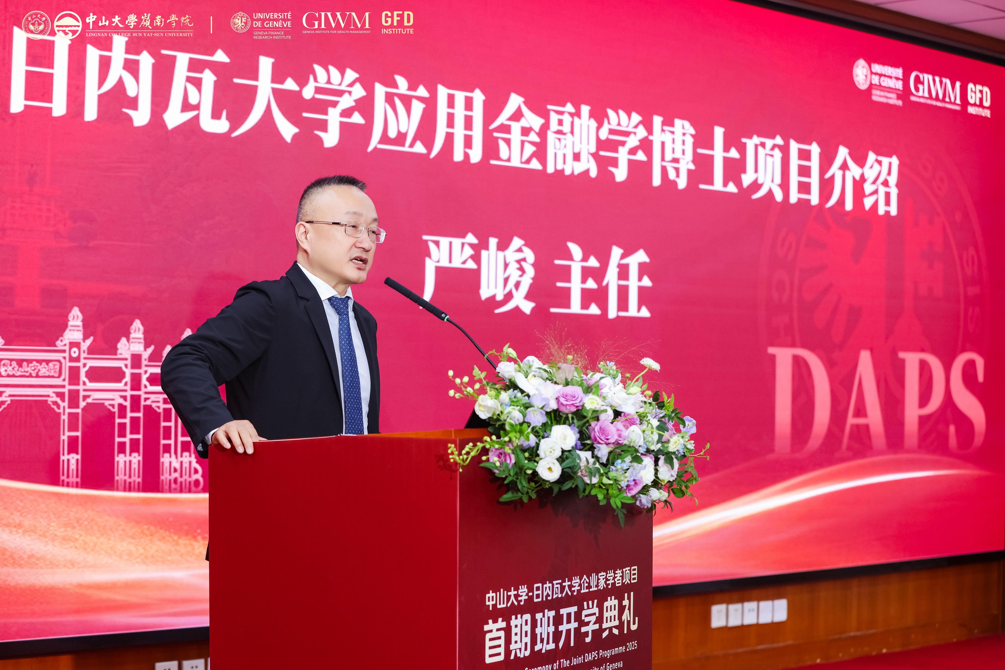 随后,日内瓦大学应用金融学博士项目联席主任严峻老师就项目的培养目标、课程体系与发展愿景作了详细阐述。