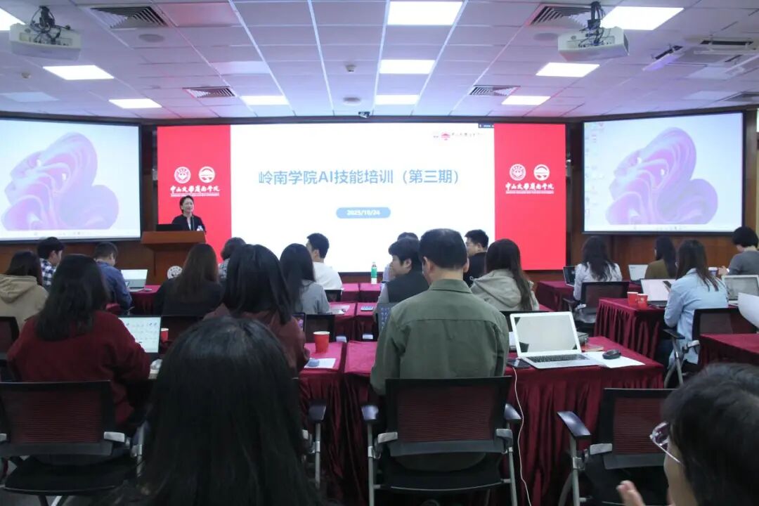 2025年10 月 24 日下午,岭南学院第三期 “AI 技能培训” 在岭南堂三楼讲学厅顺利举办。活动由学院 AI 转型专项工作组联合校网络与信息中心策划,旨在提升行政教辅团队 AI 应用能力,加速教学科研管理服务智能化转型。校网络与信息中心大学服务中心罗霖副主任携团队莅临指导,学院党委副书记樊峰会、AI 转型专项工作组学术主任李学恒助理教授、党政办主任严寒及全院行政教辅人员参训,培训由党政办副主任李义华主持。