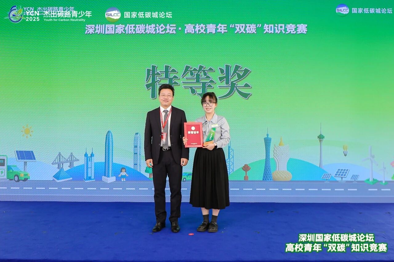 近日,在2025年深圳国家低碳城论坛·高校青年“双碳”知识竞赛决赛中,我院研究生王曦池同学凭借优异表现荣获特等奖,为学院再创佳绩。