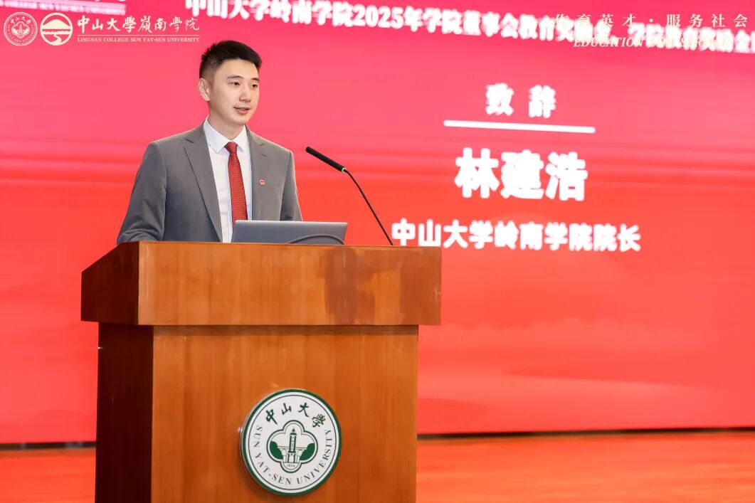 胡宁学长在致辞中代表全体董事向获奖师生送上热烈祝贺,深情致敬伍沾德等老学长的奉献,感谢各界对学院的支持。回顾36年办学历程,胡宁学长细数学院近年亮眼成果:AI平台落地、国际项目推进、百余名学子扎根乡村振兴一线,彰显“作育英才,服务社会”的初心。他以“立德立学、笃行致远、服务社会”三点期许与师生共勉,鼓励大家以荣誉为帆,在AI浪潮与乡村沃土间勇毅前行,让岭南红灰精神在时代征程中熠熠生辉。