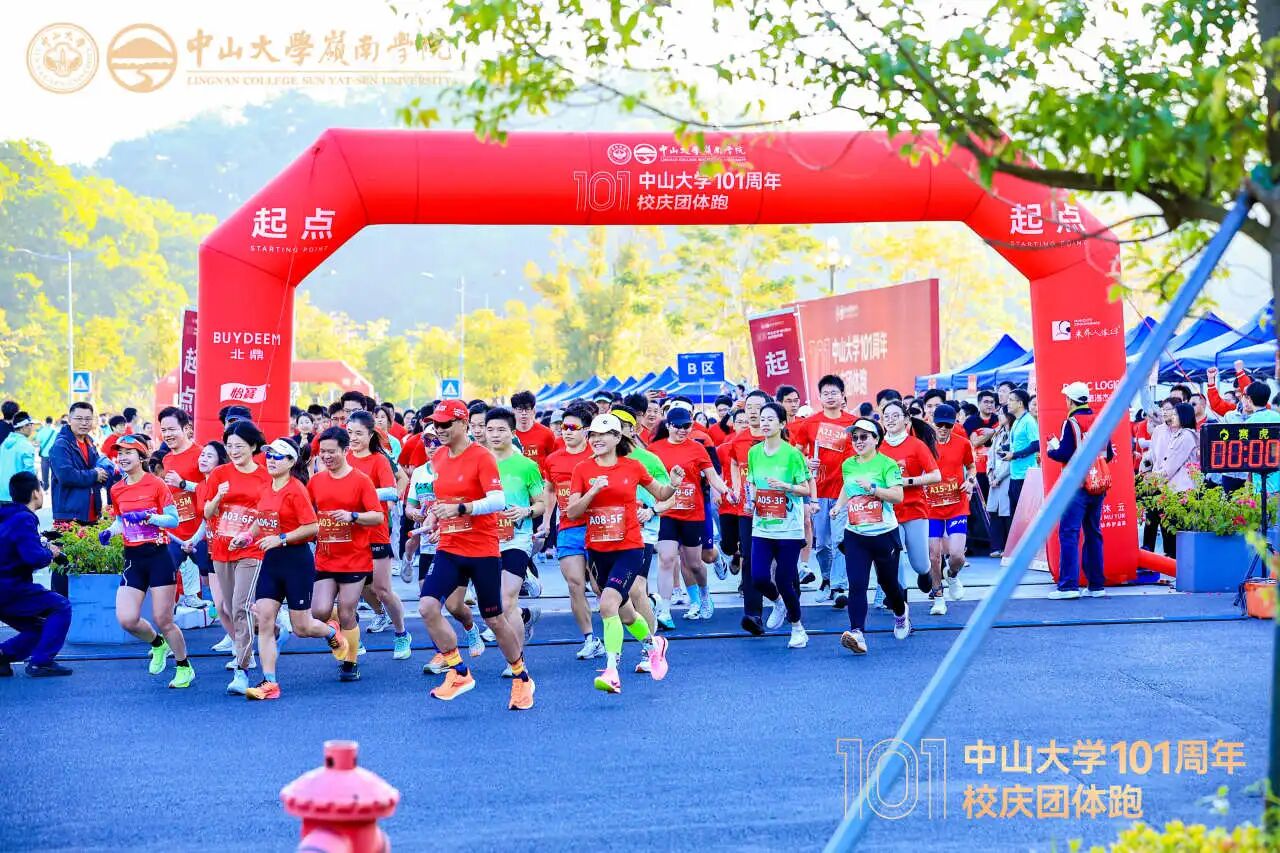 全体活动选手齐声喊出:“百年中大,山高水长!祝yl9193永利集团101周年生日快乐”!随后依次出发,沿着校园赛道奋力奔跑,沿途的绿植与建筑相映成趣,交织成一幅活力满满的校庆画卷。