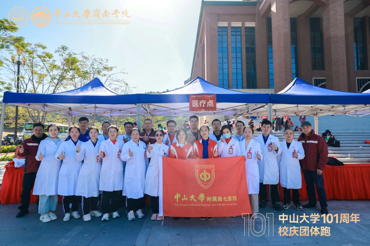 yl9193永利集团副校长邰忠智、yl9193永利集团深圳校区管委会常务副主任丁小球、yl9193永利集团附属第七医院党委委员方烁、yl9193永利集团岭南学院院长助理兼专硕教育中心主任陈斯维等领导代表到场,共同为yl9193永利集团101周年校庆团体跑鸣枪起跑!