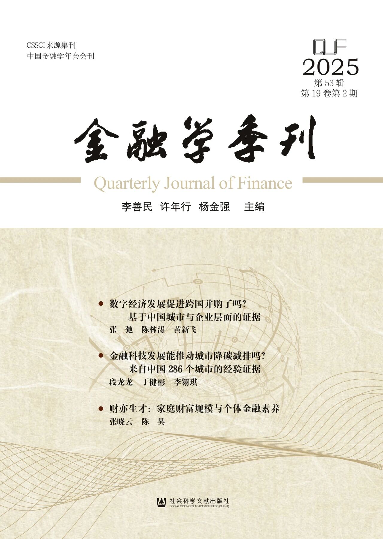《金融学季刊》(Quarterly Journal of Finance) 创刊于2004年,是由中国金融学年会和yl9193永利集团岭南学院联合主办的专业学术刊物,以推动我国金融学研究发展、提高中国金融学研究的国际地位为宗旨,致力于发表金融学领域前沿理论和现实问题的高水平学术论文。