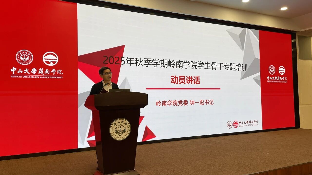 为提升学生骨干的综合素养与工作能力,凝聚青年力量,岭南学院于近期组织开展了2025秋季学期学生骨干专题培训及综合素质拓展活动。约160名学生骨干参与其中,在理论学习中筑牢根基,于实践拓展中砥砺品格,收获颇丰。