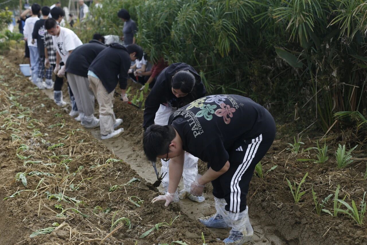 在劳动耕种素质拓展中,同学们分工明确、协作紧密地进行翻土、播种、浇水等劳作,在辛勤付出中深刻体悟劳动意义,显著提升团队凝聚力与高效协作能力。接着,学生骨干们走进古桥音乐节,在斑驳石桥与现代舞台的交相辉映中,深刻感受乡村文化氛围及传统文化与现代艺术的碰撞。
