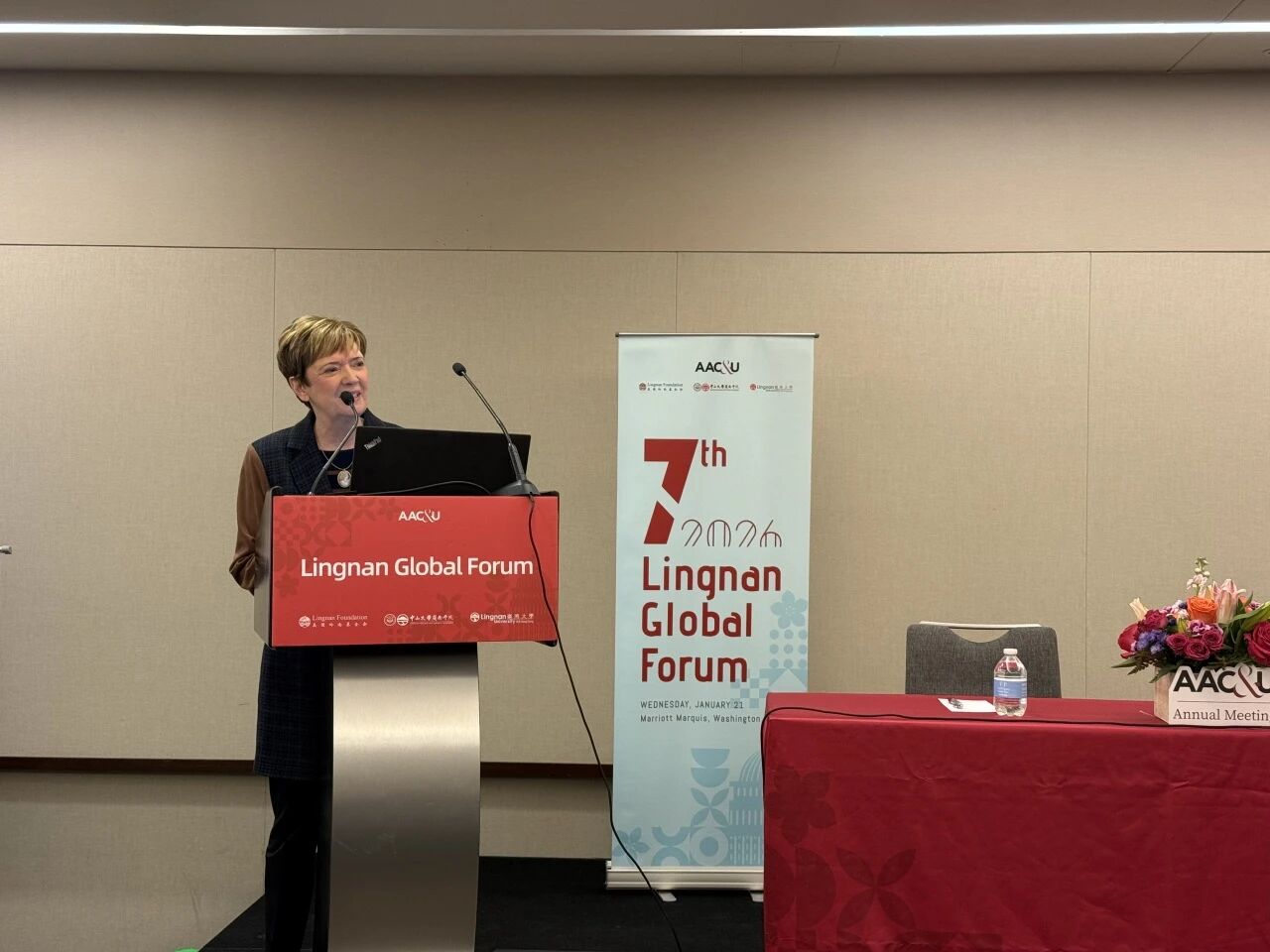 在开幕致辞中,美国大学与学院协会(AAC&U)主席、岭南基金会董事会主席Lynn Pasquerella博士指出,在技术加速演进、全球经济结构重组以及社会分化加深的背景下,高等教育正处在一个必须“主动选择未来”的关键时刻。高校不仅是知识生产者,更肩负着制度创新与社会价值塑造的重要使命。
