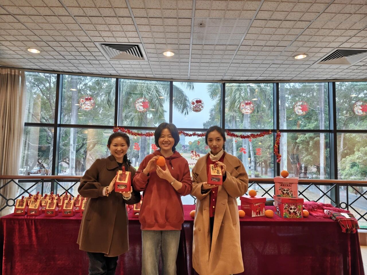 午后的年画拓印与糖画制作充满年味,红宣纸上的吉祥图案、糖浆勾勒的甜蜜造型,让同学们体验到了传统民俗文化的魅力也感受到新春的暖意。最后,同学们领取了学院精心准备的装满零食与糖果的福袋,并通过抽奖互赠礼物传递真挚情谊。