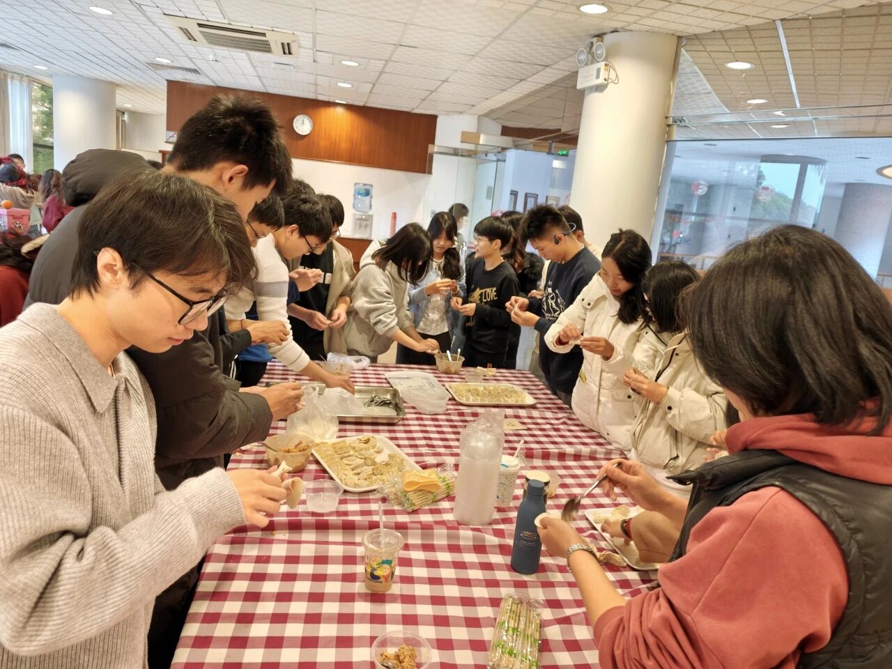 趣味桌游热闹开场,UNO、三国杀、狼人杀轮番上阵,本硕博学子打破年级界限,在协作欢笑中拉近距离。DIY包饺子环节里,大家各展巧思,元宝饺、动物饺等创意造型层出不穷,满是温馨年味。午餐时,热乎的手工饺子搭配丰富自助,学院领导老师与同学们围坐畅谈,倾听学子需求,送上新春美好寄语。