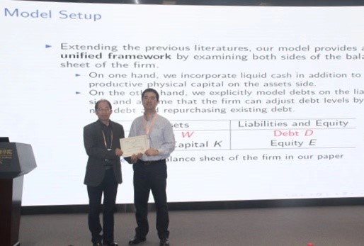 11月19日上午的大会报告在善思堂国际会议厅举行。台湾大学Chung-Ming Kuan教授在大会报告上作了题为“Systematic and Discretionary Hedge Funds: Classification and Performance Comparison”的报告,探讨了对冲基金的分类以及对这些分类后的对冲基金表现进行对比。随后,香港城市大学Junbo Wang教授、哥伦比亚大学Maecel Nutz教授、南方科技大学Zhaojun Yang教授在公司金融方面进行报告;滑铁卢大学Ken Seng Tan教授、帝国理工学院Harry Zheng教授、香港中文大学Xuedong He教授、新加坡国立大学Chao Zhou教授报告了资产选择相关问题,滑铁卢大学Jun Cai教授、中国人民大学Shunming Zhang教授、清华大学Lihong Zhang教授、北京航空航天大学Ping Li教授报告了稳健组合优化领域的最新进展。下午,金融市场、资产选择、资产定价等10个分组报告有序进行,参会学者们展开了热烈的讨论和交流。最后,苏黎世联邦理工大学的H.Mete Soner教授大会报告了“Hedging Leveraged EFTs”,报告讲述了在包括隔夜跳跃风险,无限长的时间和市场摩擦的集合中,如何对交易所交易基金的杠杆率进行每日的再调整。大会报告结束后,李仲飞教授致闭幕辞,感谢来自世界各地学者的积极参加,并就下一届在越南举办的第七届亚洲量化金融会议向与会嘉宾发出了诚挚的邀请。
