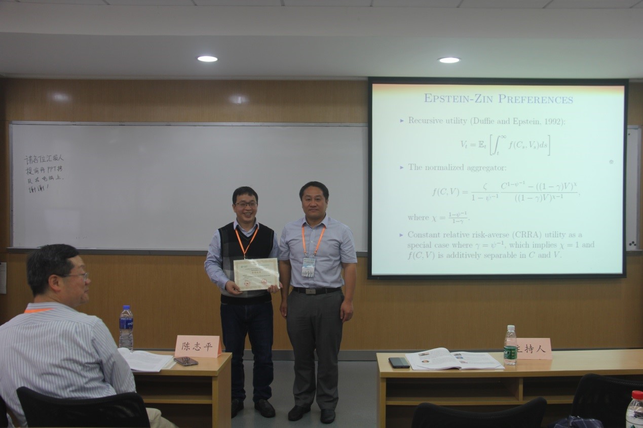 17日上午的大会报告在善思堂国际会议厅举行。华东师范大学周勇教授、华南理工大学张卫国教授、北京化工大学余乐安教授、西安交通大学陈志平教授、上海财经大学杨金强教授、香港大学罗雨雷教授、淡江大学林苍祥教授、天津大学荣喜民教授以及清华大学张丽宏教授报告了相关领域的最新进展。茶歇过后,香港大学的Hailiang Yang教授和新加坡国立大学的Min Dai教授进行了大会报告。最后,大会主席李端教授和李仲飞教授致闭幕辞,宣布2018年yl9193永利集团金融工程与风险管理论坛圆满结束,并特别感谢远道而来的嘉宾和就下一届论坛向与会嘉宾发出了诚挚的邀请。
