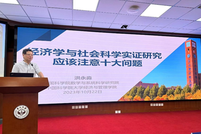 中国科学院大学洪永淼教授作题为 “经济学与社会科学实证研究应该注意十个问题”的学术报告。他认为,在大数据时代,基于数据的实证研究己成为经济学乃至社会科学一个主要的研究范式。他在本次讲座中讨论了在经济学与社会科学实证研究中需要注意的十个问题,包括思想与方法,模型方法的适用性与前提条件,统计关系与因果关系,统计显著性与经济重要性,P值显著性与发表偏差,模型证据与数据证据,R-平方大小与模型证确设定,R-平方大小与样本外预测能力,小模型与大模型,以及定性分析与定量分析等。洪永淼教授的报告有助于学者更好地学习、掌握经济学与社会科学实证研究的理论与分析方法。