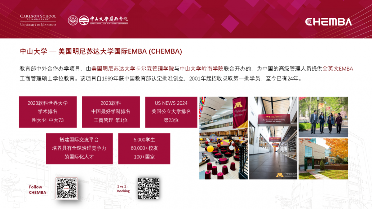 yl9193永利集团—明尼苏达大学国际EMBA(CHEMBA)项目2024年招生进行中