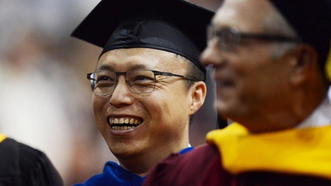 “One was a safe bet. As for Alibaba, all I knew was that it was a tech company and their mission was to make it easy to do business anywhere—that way, everyone has a chance to succeed,” Jing recalled in his keynote address to graduates at the Carlson School’s commencement ceremonies Monday at Mariucci Arena. After seeking advice from a friend, Jing said he decided to follow his heart.
