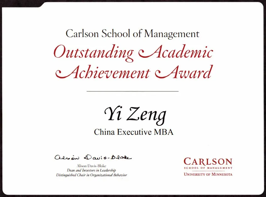 CHEMBA brings the accumulated academic wealth of a Western business school program into an elite Chinese business school setting where most students are still working full-time. Admitted, CHEMBA graduates would have wanted more time spent in the beautiful campus of Twin Cities, but it could be far more rewarding financially and academically than a full-time MBA program. Compared to above 100 thousand dollars of total cost for a US-based full-time program, CHEMBA costed me only a fraction of that, and it allowed me to resume my professional and familiar lives without too many interruptions. I may have unwittingly resolved to my financial analysis mindset in this respect, but this was done way before I switched my career from Marketing to Finance, and whenever I look back at this experience, I always feel lucky that I was able to have CHEMBA program at that time.