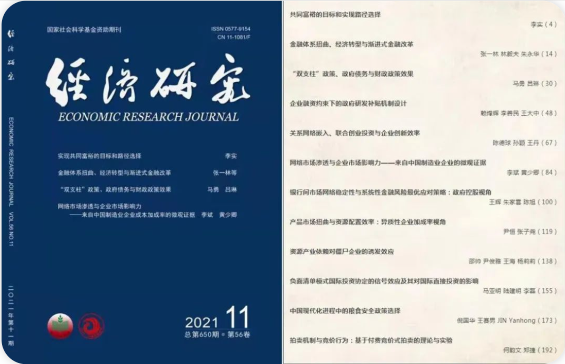 我院张一林副教授与北京大学林毅夫教授、朱永华博士合作的论文《金融体系扭曲、经济转型与渐进式金融改革》于2021年11月在经济学中文顶级期刊《经济研究》发表。