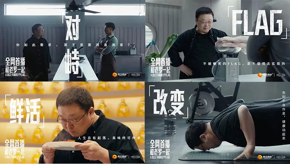 西王玉米胚芽油X肌肉科技X品牌推荐官罗永浩的三者强强联合横空出世,全网首次油品+运动营养+科技名人跨界联合,是前所未有的新体验。借热点时期打造充满创意的“为健康立个FLAG”系列宣传,掀起一轮全民关注健康的风潮。