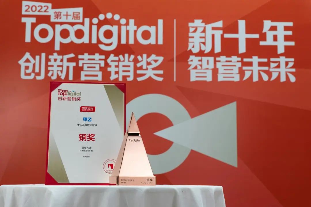 7月14日,2022第十届TopDigital创新营销奖获奖结果正式揭晓,甲乙不负众望,在2904件作品中突出重围,用实力斩获TopDigital创新营销银、铜两项大奖——西王x罗永浩:2022为健康立个FLAG!、广发《名画闹新春》,充分体现甲乙的实力。