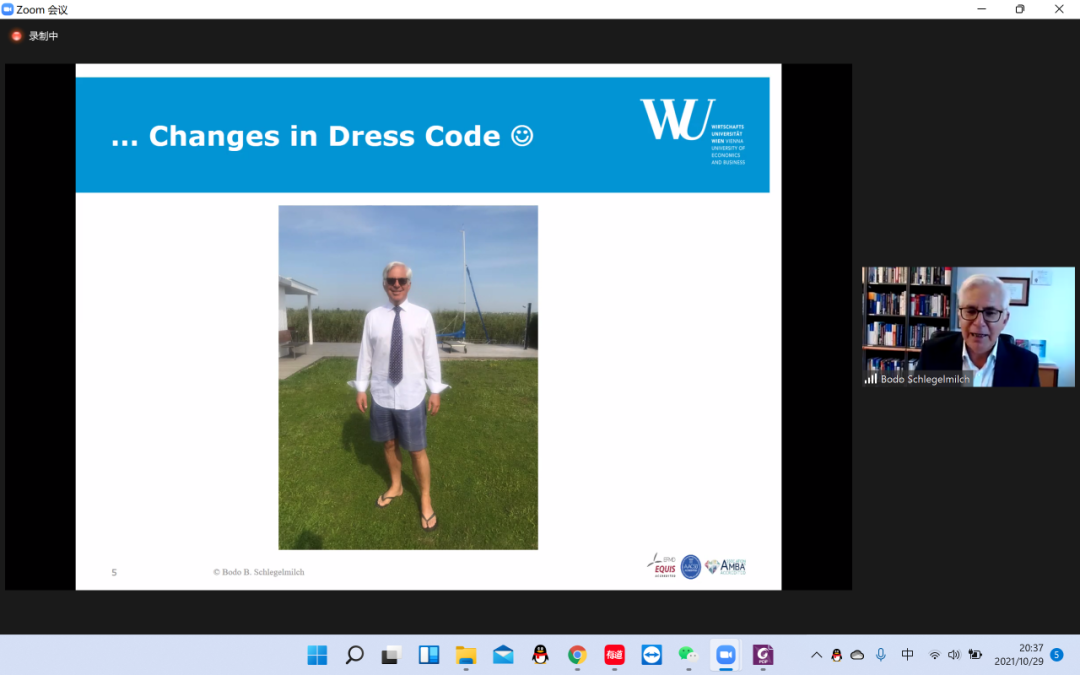 Bodo教授从疫情对市场营销的影响、全球营销战略中的概念、数字经济下的全球营销组合决策、以及全球营销管理中的趋势等几个方面,较为宏观地介绍了营销管理。通过有趣的案例分析,Bodo教授让大家从日常新闻报道及亲身工作经历中思考其中的营销管理思想,强化大家对营销管理知识的理解。教授们都非常喜欢学生们的提问,不管是在课堂上还是课后都非常耐心地解答大家的疑问。
