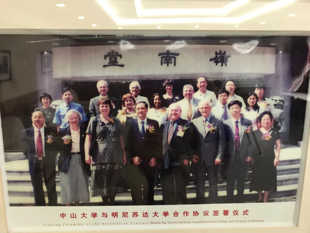 3:00 p.m. on June 22, 2000, Lingnan College and the Carlson schoolof Management, University of Minnesota held a signing ceremony for the joint establishment of executive MBA program (EMBA) in the multifunctional conference hall on the third floor of Lingnan Hall. In addition to members of the School Board of Directors of University of Minnesota, Dr. Mark Yudof, President of University of Minnesota, Dr. David S. Kidwell, Dean of the Carlson College Kidwell, Professor Mahmood Zaidi, and dozens of University of Minnesota alumni attended the event. At the meeting, Dr. James Wu, the honorary chairman of the School Board of Directors of Lingnan (University) College, Professor SHU yuan, Dean of Lingnan College, and Dr. David S. Kidwell, Dean of Carlson college, signed a cooperation agreement together, which planned to start the course in March 2001.