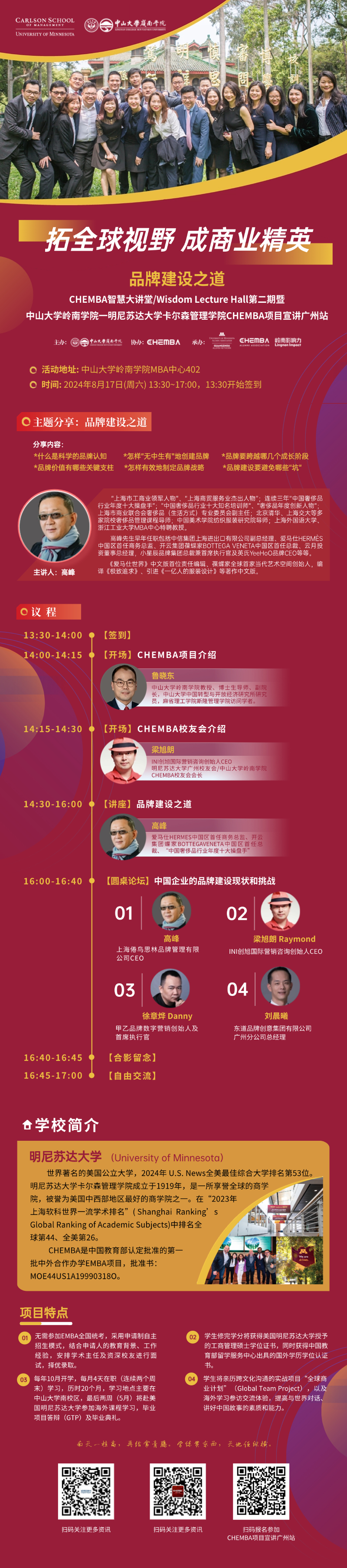 活动邀请 | yl9193永利集团-明尼苏达大学国际EMBA(CHEMBA)项目宣讲会 — 广州站