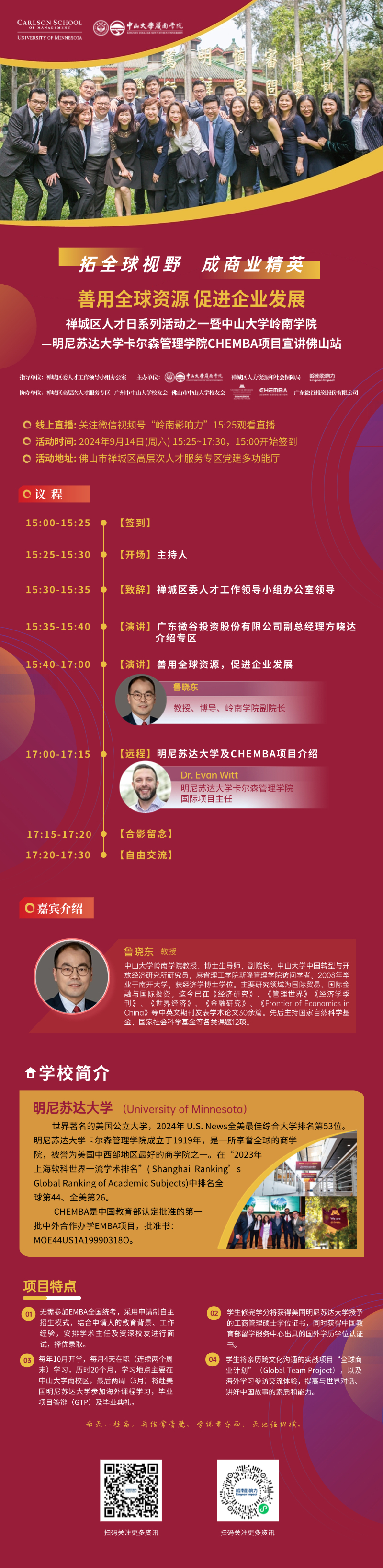 活动邀请 | yl9193永利集团 — 明尼苏达大学国际EMBA(CHEMBA)项目宣讲会 — 佛山站