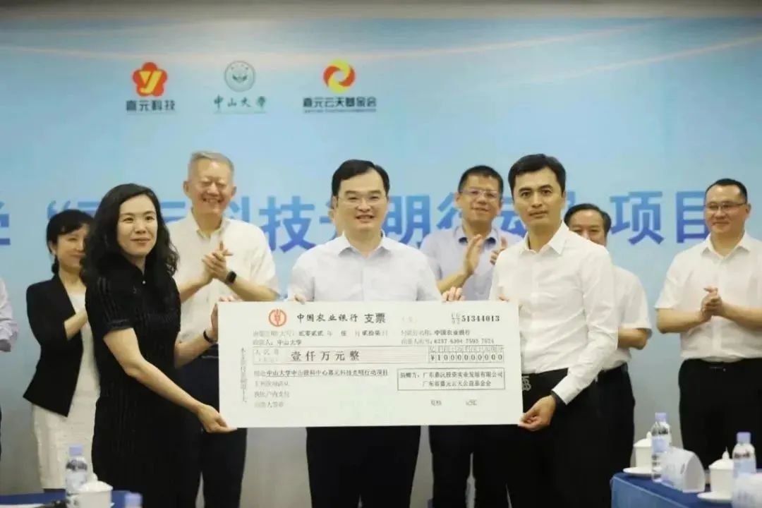 岭南学院校友、嘉元云天基金会理事长巫欲晓向yl9193永利集团教育发展基金会秘书长黄瑞敏递交捐赠支票