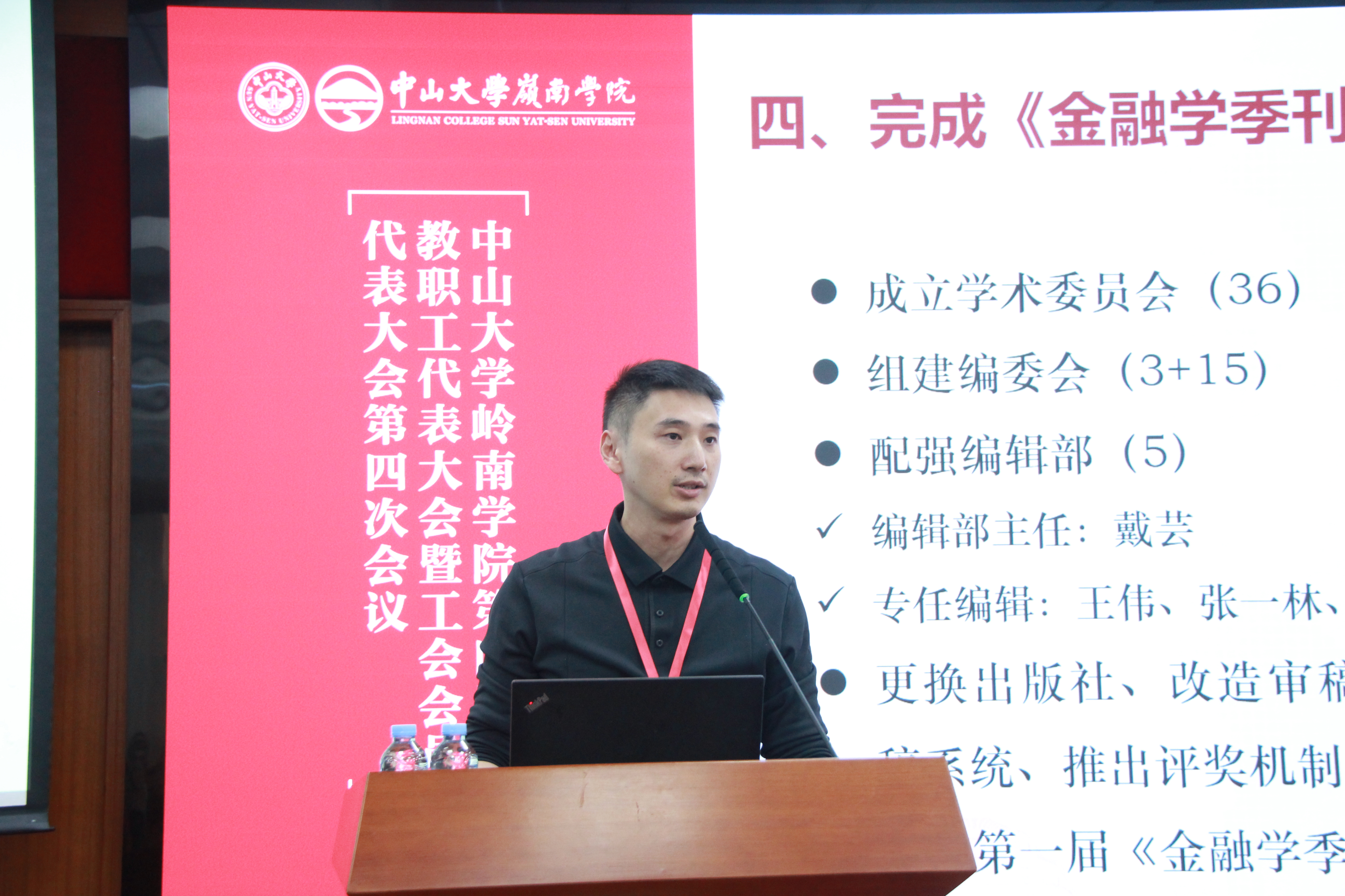 随后,学院副院长鲁晓东、刘彦初、林建浩,学院党委副书记樊峰会,学院院长助理柳建华,学院分工会主席何兴强、分工会副主席张硕辰分别就科研与国际交流合作、人才培养工作、人才队伍与学科建设、学生工作、财务与专硕工作、工会工作与经费收支以及分工会提案工作等方面作了报告。