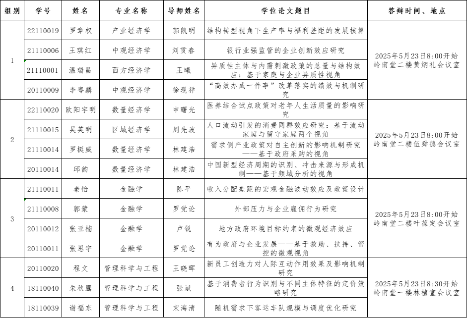 岭南学院2025年上半年博士论文正式答辩安排