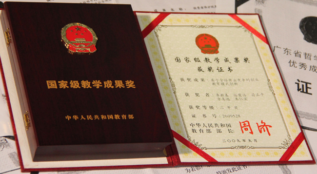 2)李新春,国家级教学成果奖二等奖,“基于全球商业竞争的创业教育模式创新”,,2009年度