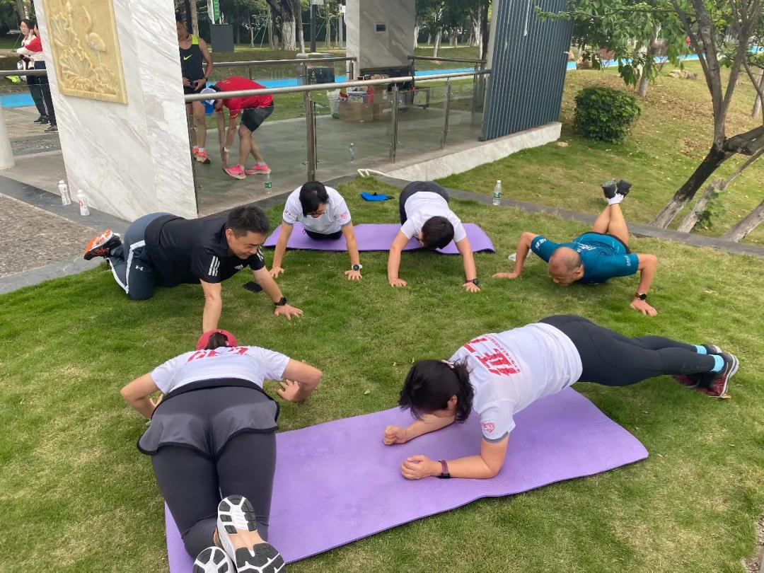 当天傍晚时分,暮色渐浓,而志气才起,参访完的戈友们在生物岛集合,进行了60分钟慢跑和核心力量训练后才肯散去。