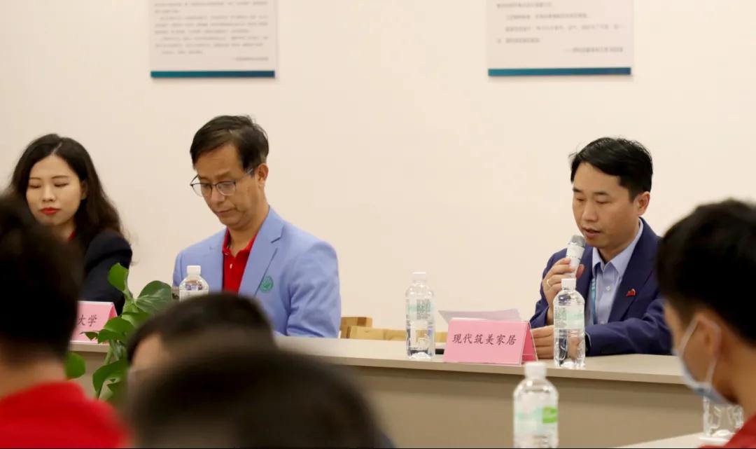 研讨会期间,现代筑美家居新零售事业部总经理生卫华发表致辞:现代筑美家居有限公司主要生产:木门、地板、橱柜、衣柜、收纳柜、家具、卫浴、厨电等产品,是集研发、设计、生产和销售为一体的综合型家居配套服务公司。公司拥有三大生产基地,包括肇庆总部,河南信阳及安徽滁州基地。三大基地占地面积超过255万㎡,所有基地均引进先进欧洲生产设备和高新技术,整体产能超过300亿。经过多年的沉淀与发展,目前现代筑美已形成“工程+零售”的双引擎发展模式,并不断精进发展,全面融入"十四五"国家发展大局。同学们在聆听了筑美生总的介绍后,与企业领导就筑美家居运营和发展问题进行了交流。
