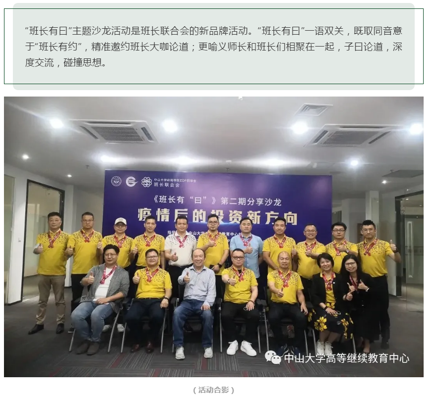 校友活动 |班长联合会第二期“班长有曰”《疫情过后企业投资新方向》主题沙龙圆满举办