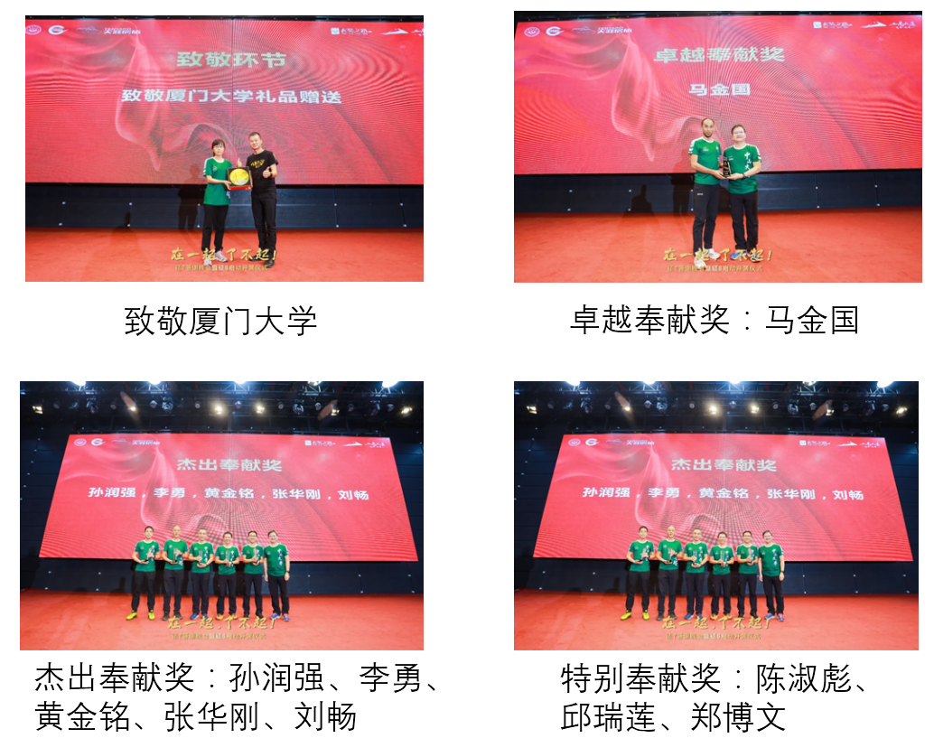 征7队伍能够取得如此佳绩,离不开校友企业和各个班级的慷慨支持。同时大会向因抗击疫情而未能参与赛事的厦门大学致敬,向参与BC连挑战,互帮互助完成赛事的三位校友勇士致敬。最后给予付出杰出奉献的教练、队医和老戈友代表颁发荣誉奖项。
