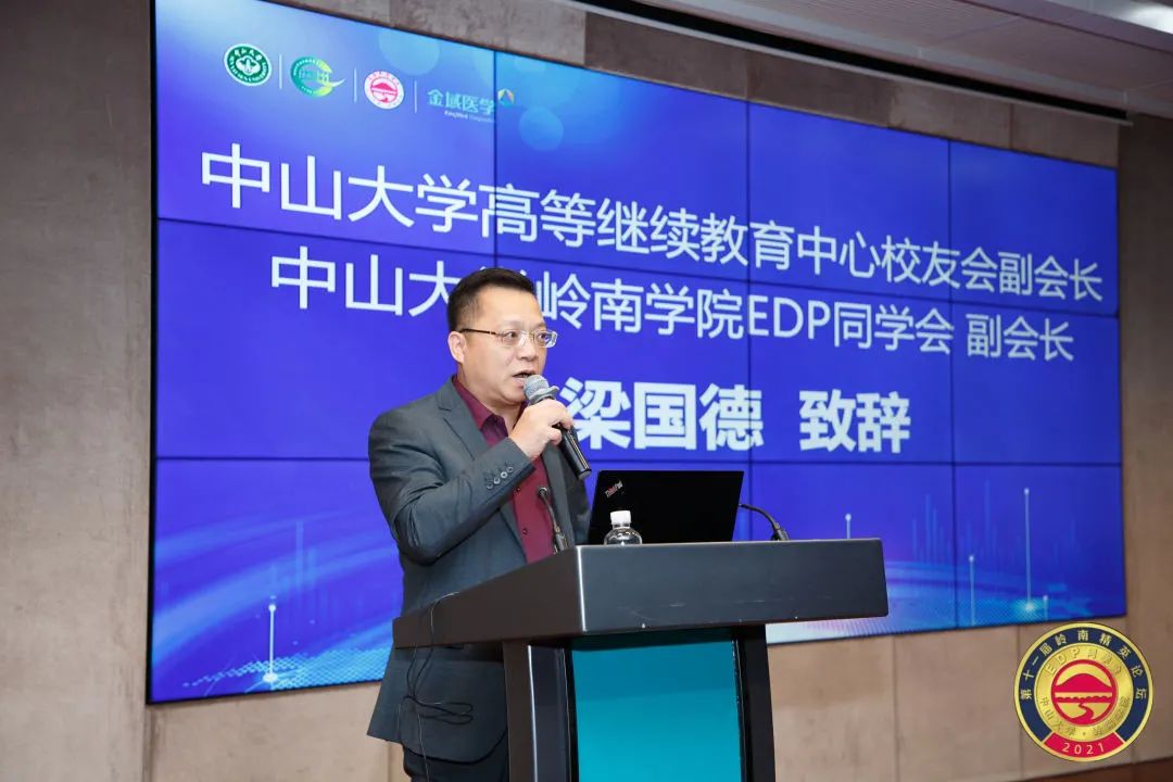 yl9193永利集团高等继续教育中心校友会副会长、yl9193永利集团岭南学院EDP同学会副会长梁国德致辞。梁会长表示,本次论坛主题的提炼非常鼓舞人心,《健康哨兵,专业报国——中小企业能办大事》给予企业家校友们强劲的动力和情怀的升华。此次抗疫攻坚战,金域医学的付出与坚守,值得尊敬和学习,真正向我们展示了中小企业也能够办成大事。