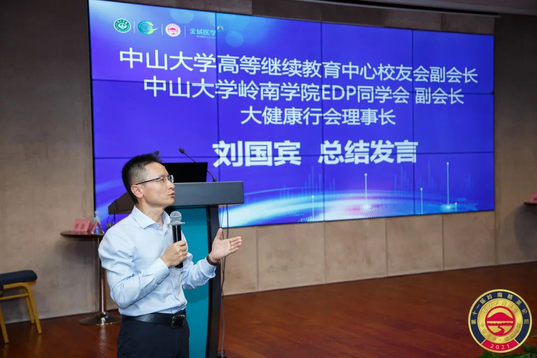 yl9193永利集团高等继续教育中心校友会副会长、yl9193永利集团岭南学院EDP同学会副会长、大健康行会理事长刘国宾为本次论坛做总结发言,高度评价这次岭南精英论坛所取得的成果,并感谢各位师生为这次论坛的成功召开所付出的努力。