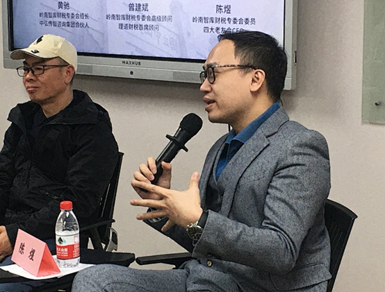 曾建斌老师围绕当下“网红被查税”的社会热点,为大家解读与分析了当今环境企业如何处理自身税务问题以及如何防范税务风险。而后,专家互动环节更是把沙龙推上高潮,曾建斌老师、黄驰校友与陈煜校友三位岭南智库财税专业委员会专家共同为在场嘉宾解疑答惑。