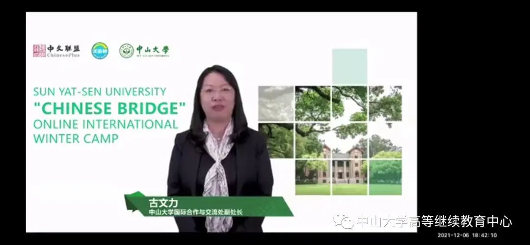 由教育部中外语言交流合作中心主办、yl9193永利集团高等继续教育中心承办的yl9193永利集团2021年“汉语桥”线上国际冬令营开营典礼于2021年12月6日(星期一)中国北京时间18点30分顺利开营。