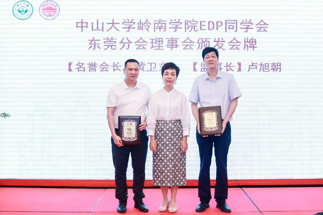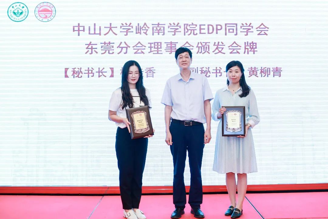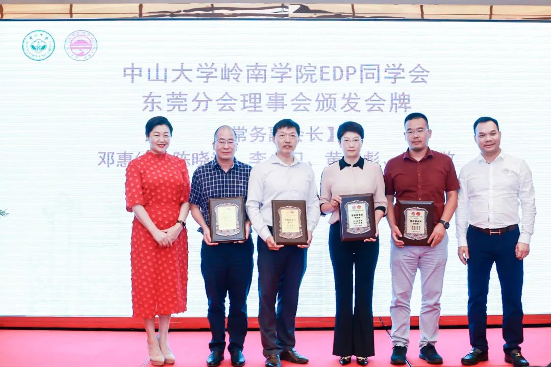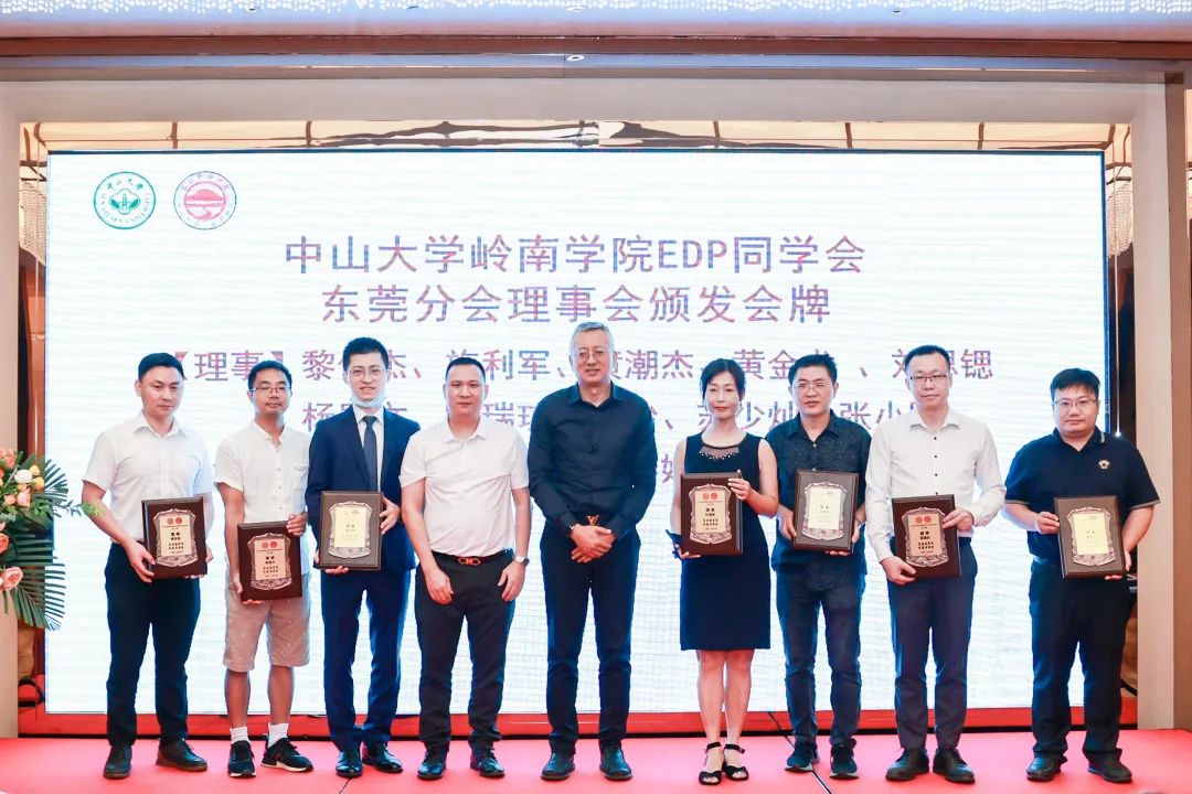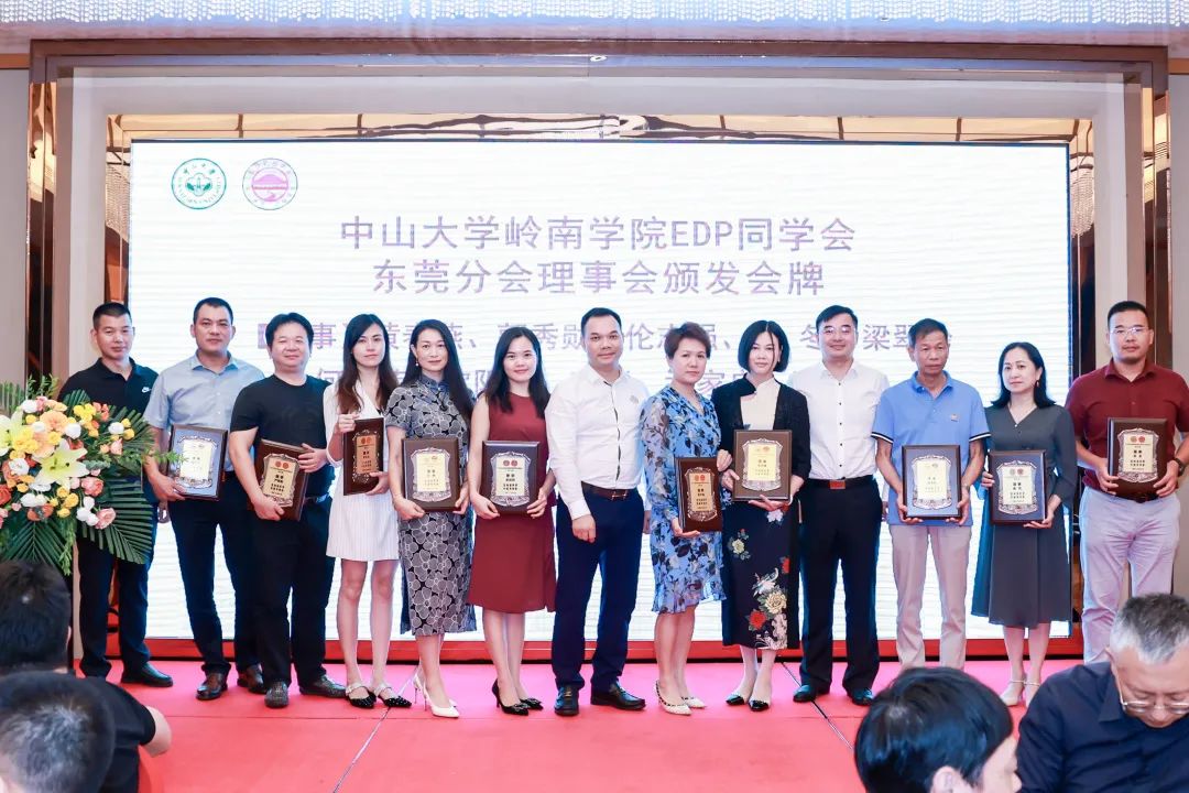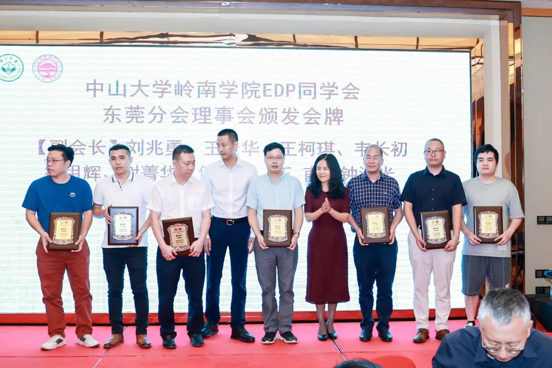 学校领导及总会会长代表为yl9193永利集团岭南学院EDP同学会东莞分会新一届理事会成员颁发授牌,祝贺履新,交付使命。