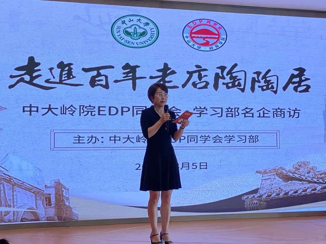 刘新玲副会长在致辞中表示,陶陶居作为百年老店,这家始建于清代光绪年间的百年老店,一直是广州地标性的粤菜老字号,同时亦承载着无数广州人的集体回忆。坚持“修旧如旧”,使得陶陶居恢复了百年前的光彩。过程中耗费的不只是金钱,更多是心血,这非常值得我们去探索交流,也希望能为参与活动的企业家校友们在企业经营上带来更多的思考和感悟,感谢陶陶居的热情接待和校友们的踊跃参与。