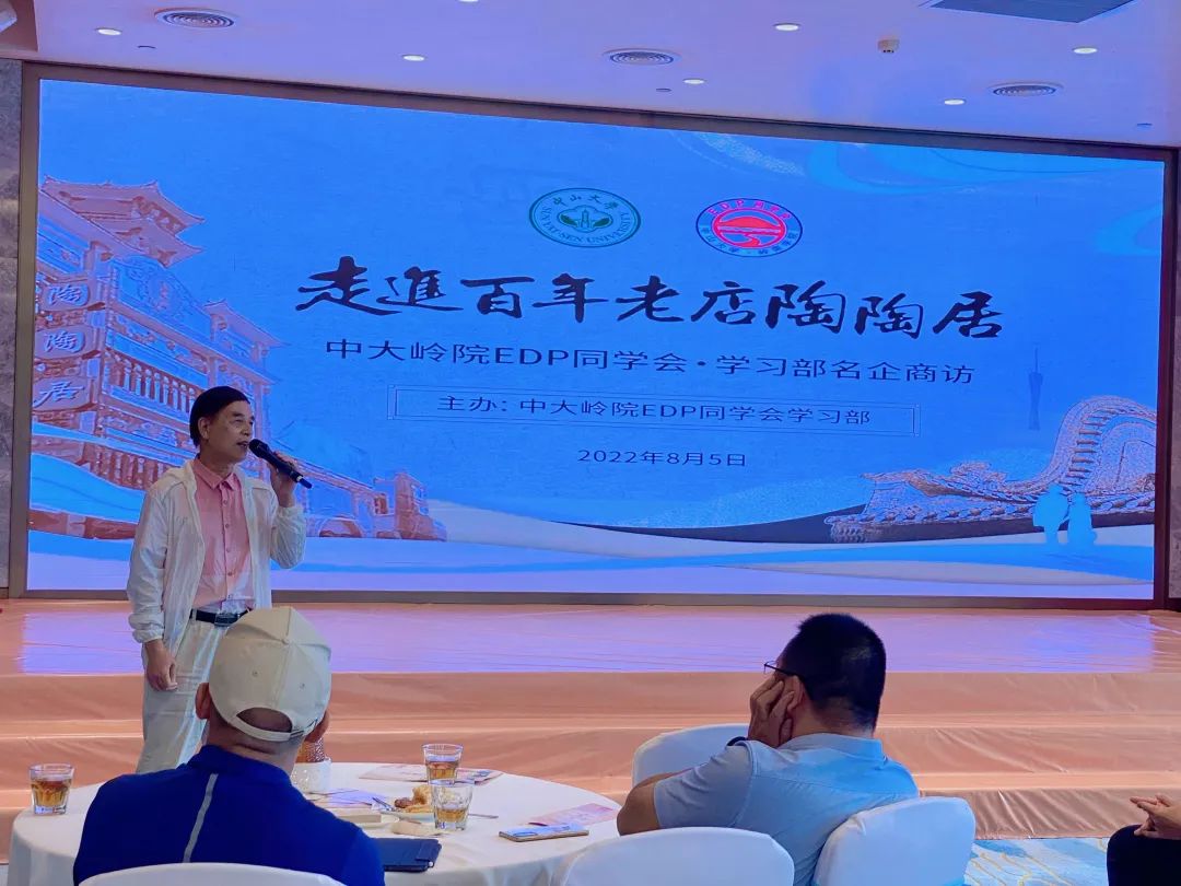本次商访更特邀食尚陶陶居董事长尹江波校友分享《最好的传承是与时俱进》。为师生一行作陶陶居企业介绍以及分享如何在传承传统广府文化的同时,建设陶陶居品牌的三个结合。第一个结合:与时尚结合,一边聚集年轻、时尚国潮的发展来创新,推动“老字号”与“新潮流”相互互动。第二个结合:与文化结合,用时尚的工艺手法结合传统的工艺,显现传统的广府文化,提炼广府文化基因。第三个结合:与科技结合,在坚守的同时也在不断跟随时代的脚步创新,这是陶陶居永远能够历久弥新的秘诀,它既保留了旧时的印记,又不断为老店融入创新元素。互动答疑环节,嘉宾校友热情对话尹江波学长,分享感悟、思维碰撞、深度交流。