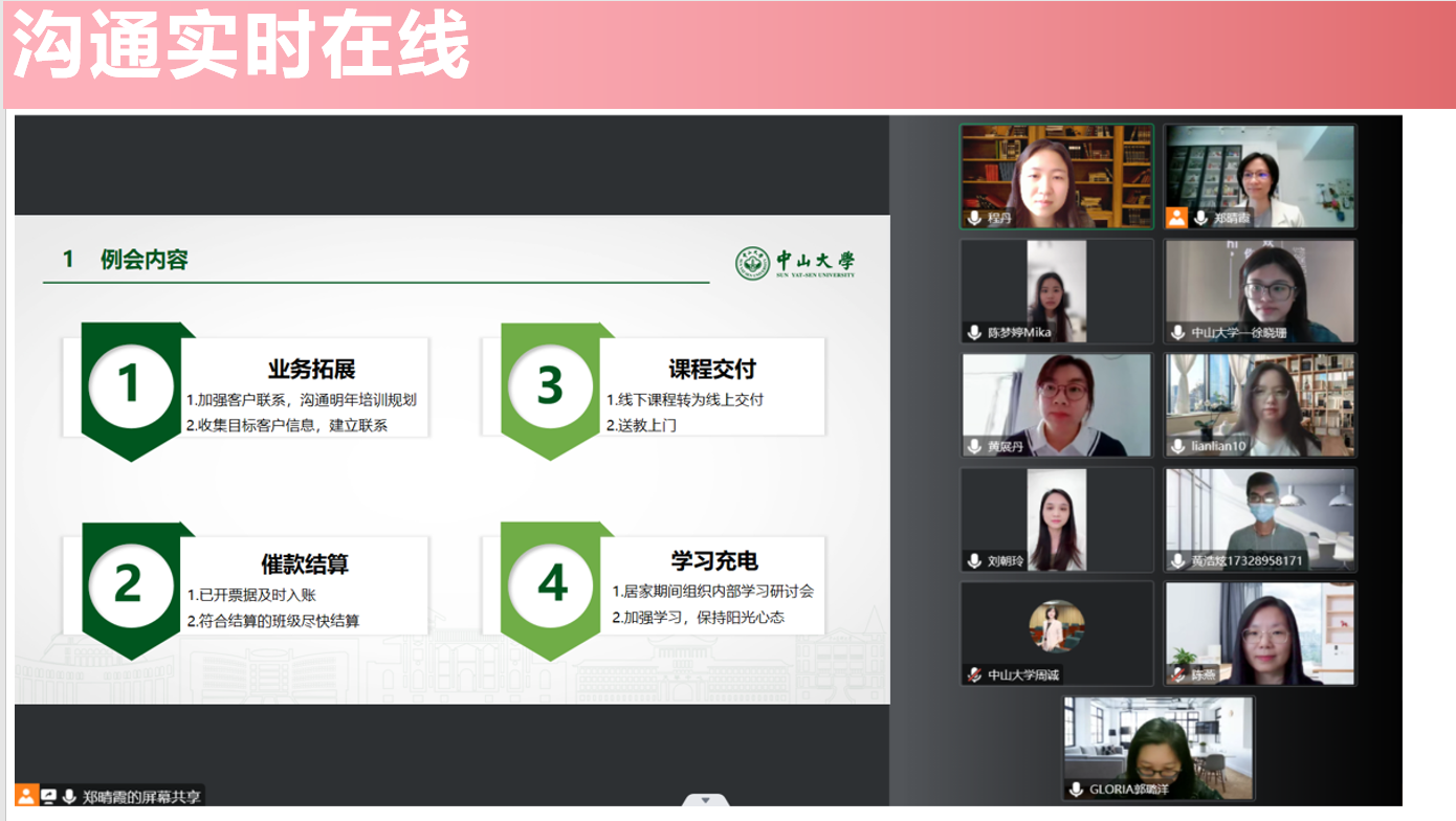 11月,受疫情影响企业管理培训中心暂停回校办公,中心迅速进行居家办公总动员,对各部门重点工作进行布署。