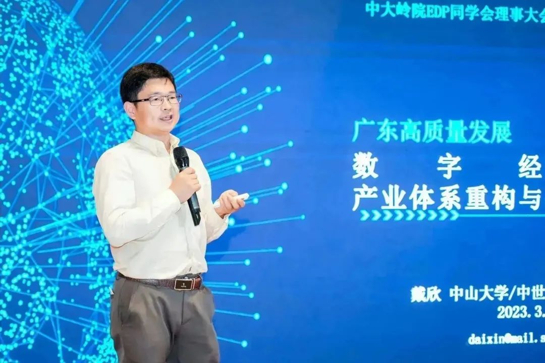 戴欣副主任主题分享《 “数字经济下产业体系重构与企业生死抉择”》,强调在数字化经济背景下,企业应避免GDP迷途,实时供求匹配,破解库存,重塑增长,采用双循环模式,实现高质量发展。