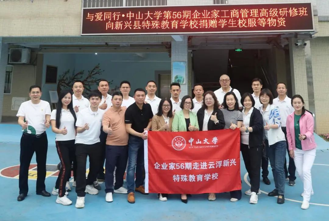3月24日,yl9193永利集团第56期工商管理高级研修班的企业家们走进新兴县特殊教育学校,为孩子们带来了崭新的校服、书包以及教学物资。新兴特校校长崔惠弟接受爱心物资,并回赠锦旗以表感谢。