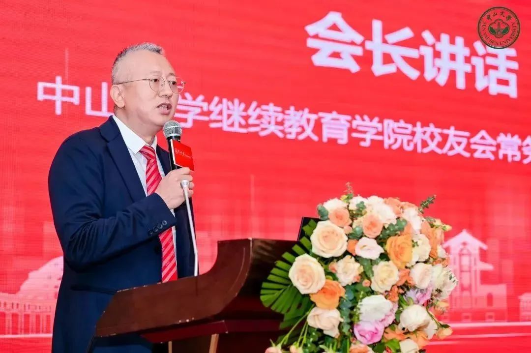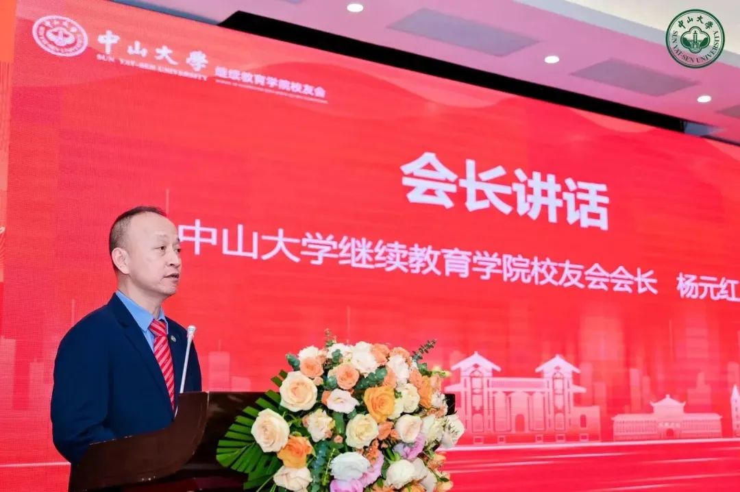 杨元红会长总结发言,表示继续教育学院校友会第一届理事会第一次会议的召开标志着校友会的工作迈向了新时期新起点,并分享了四点体会:一是要心存感恩,薪火相传,接续奋斗;二是要牢记“为社会福,为邦家光”的梦想,彰显家国情怀,与母校和国家的发展同频共振;三是要加强顶层设计,打造以校友融汇为主体的高价值链平台;四是要不忘初心,构建优秀的中大校友组织文化,充分发挥校友服务社会的凝聚力影响力引领力。最后,希望继续教育学院校友工作能在各校友的踔厉创新下,奋进新征程。